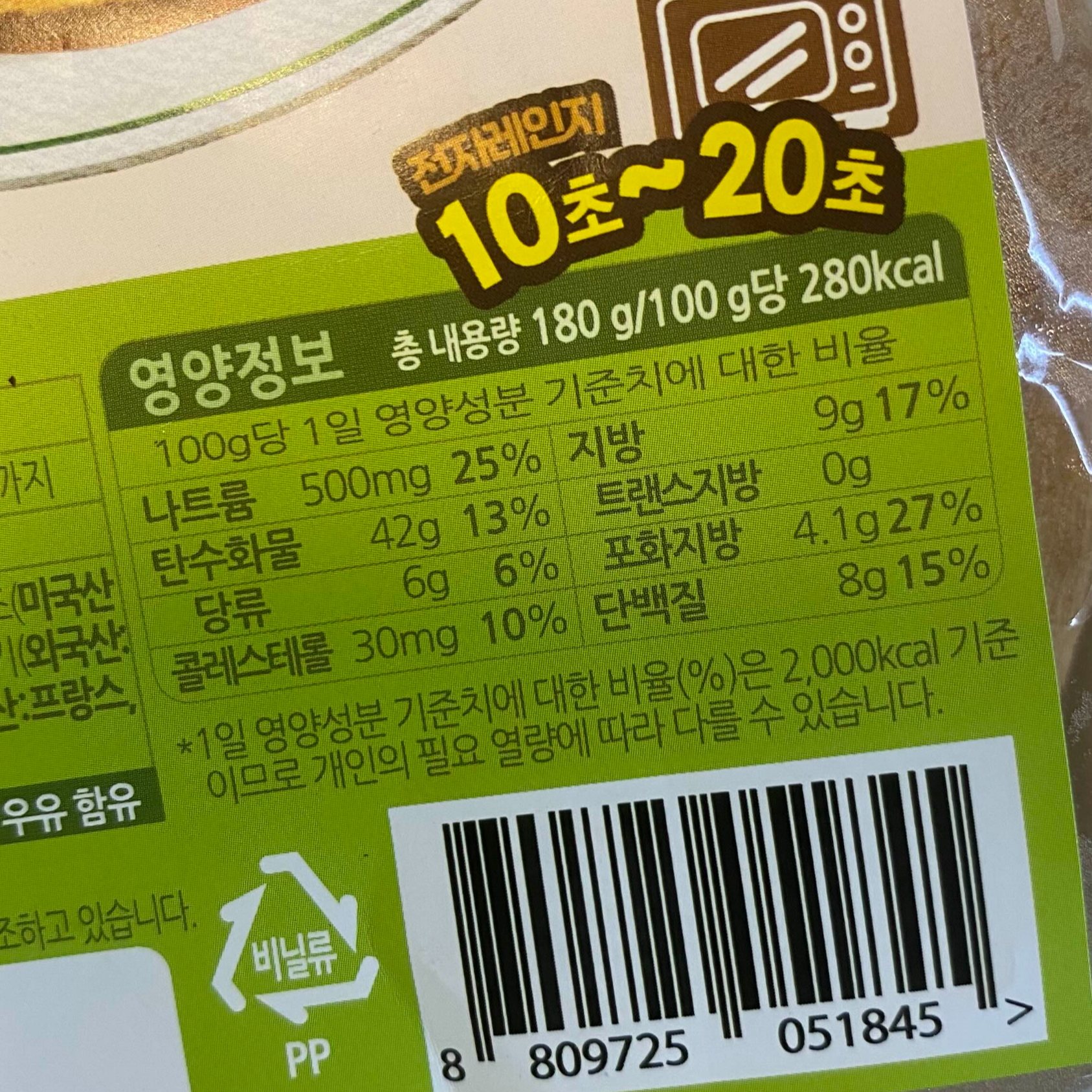 난 좀 더 따듯하게 먹고 싶어서 전자레인지에 20초 돌렸고 탁월했다.
