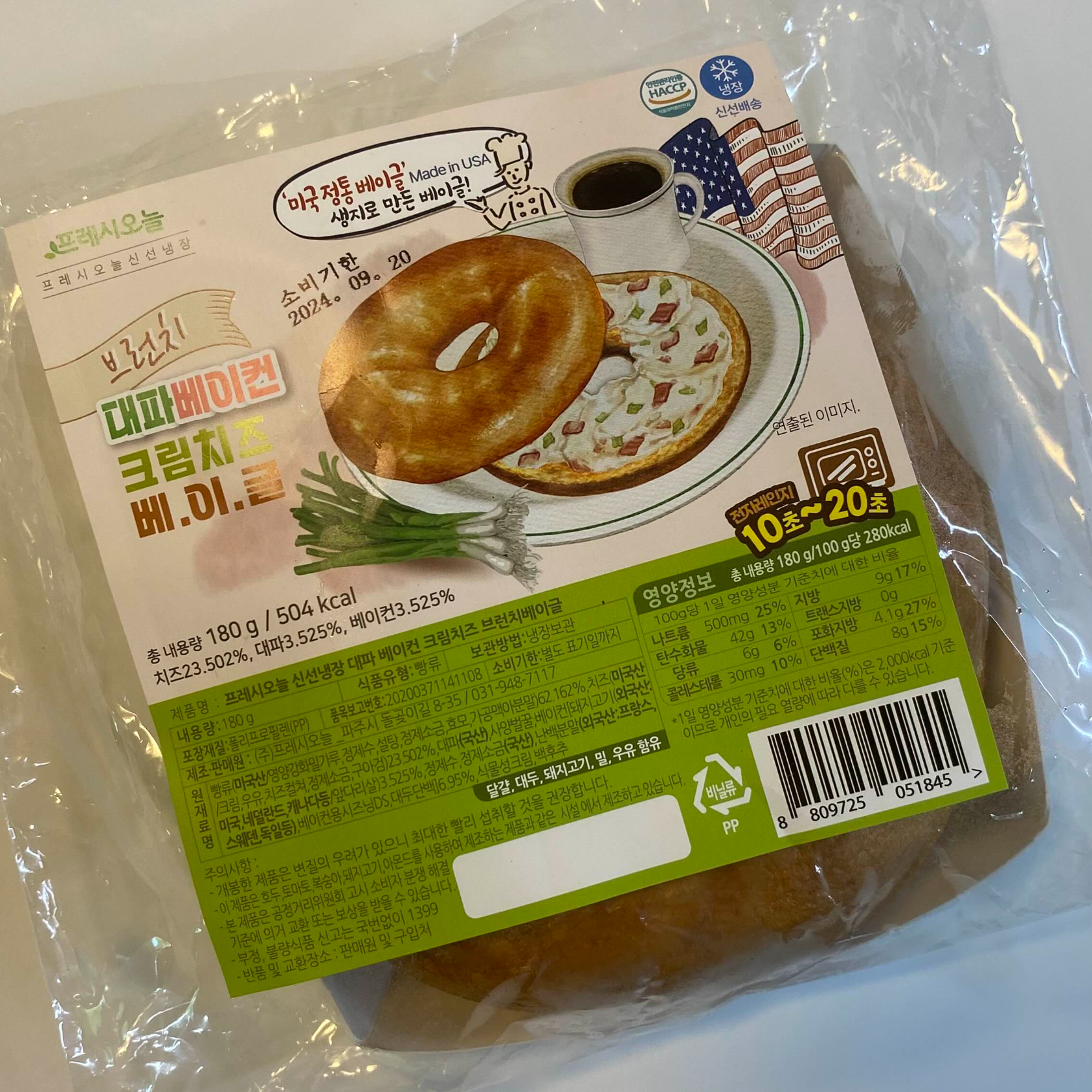 프레시오늘 대파베이컨 크림치즈 브런치 베이글, 180g, 1개 - 베이글/프레즐 | 쿠팡